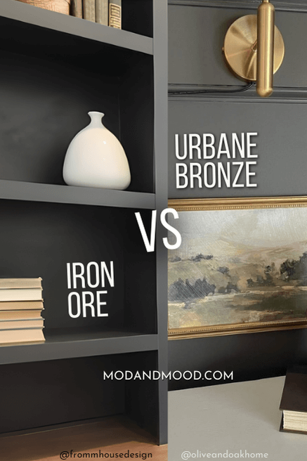 Both are deep moody charcoals, but Urbane Bronze brings warmth and depth, while Iron Ore brings a more classic look that is still sophisticated.